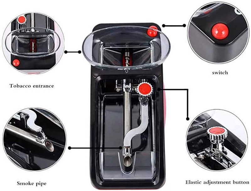 Cigarette Rolling Machine US 6.5 Plug Tobacco Roller Electric Automatic Injector Maker Smoking Tool - Black Red