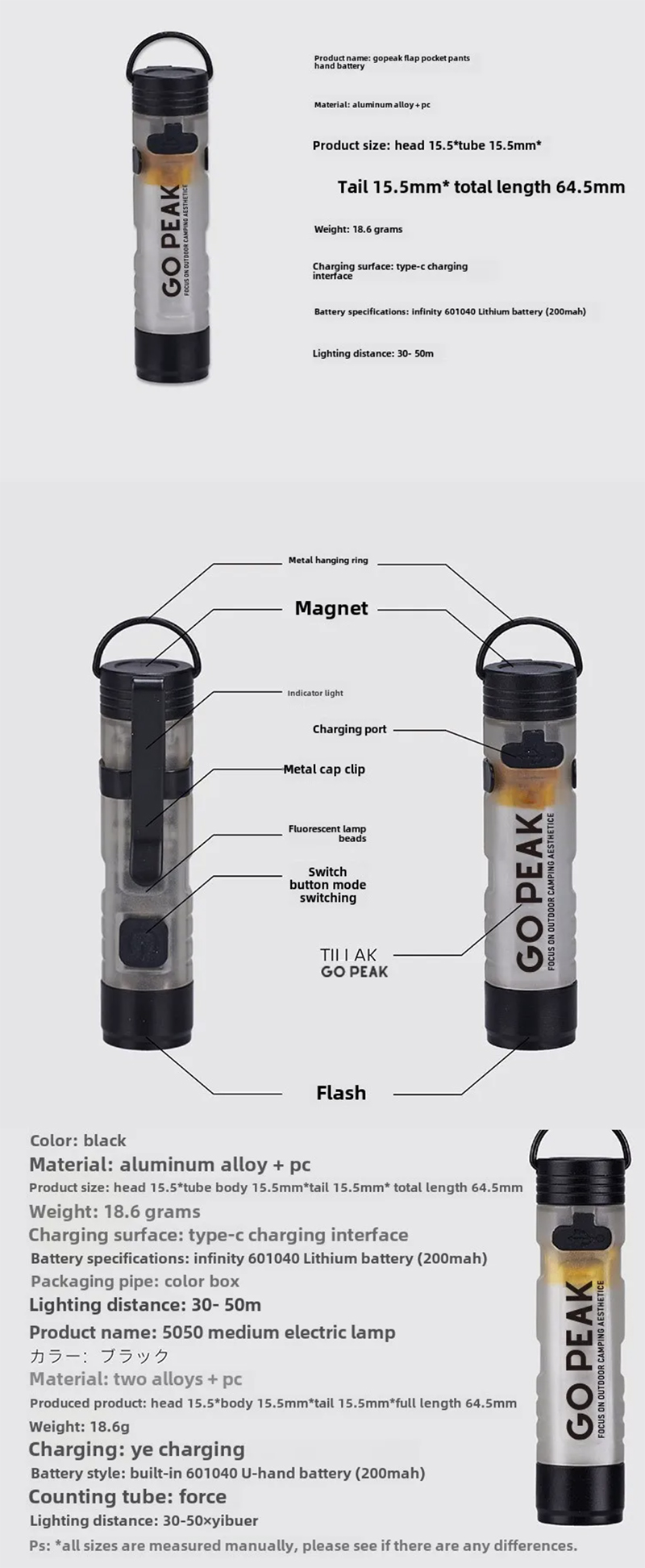 1* Go Peak Pocket Mini Flashlight