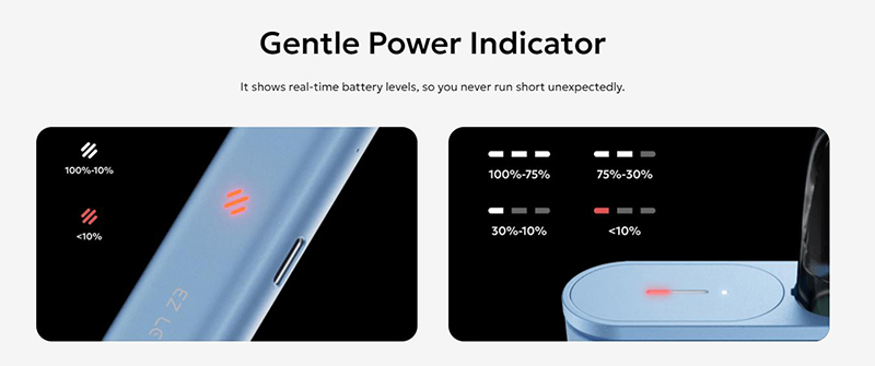 Gentle power indicator to show real-time battery level