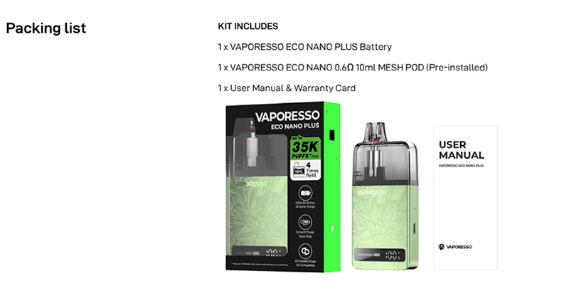 Authentic Vaporesso ECO Nano Plus Kit 10ml