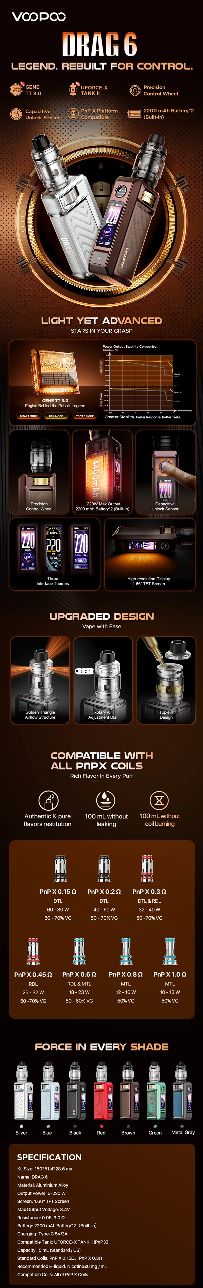 1* Drag 6 Device ( 2* 2200mAh Battery (Built-in) )